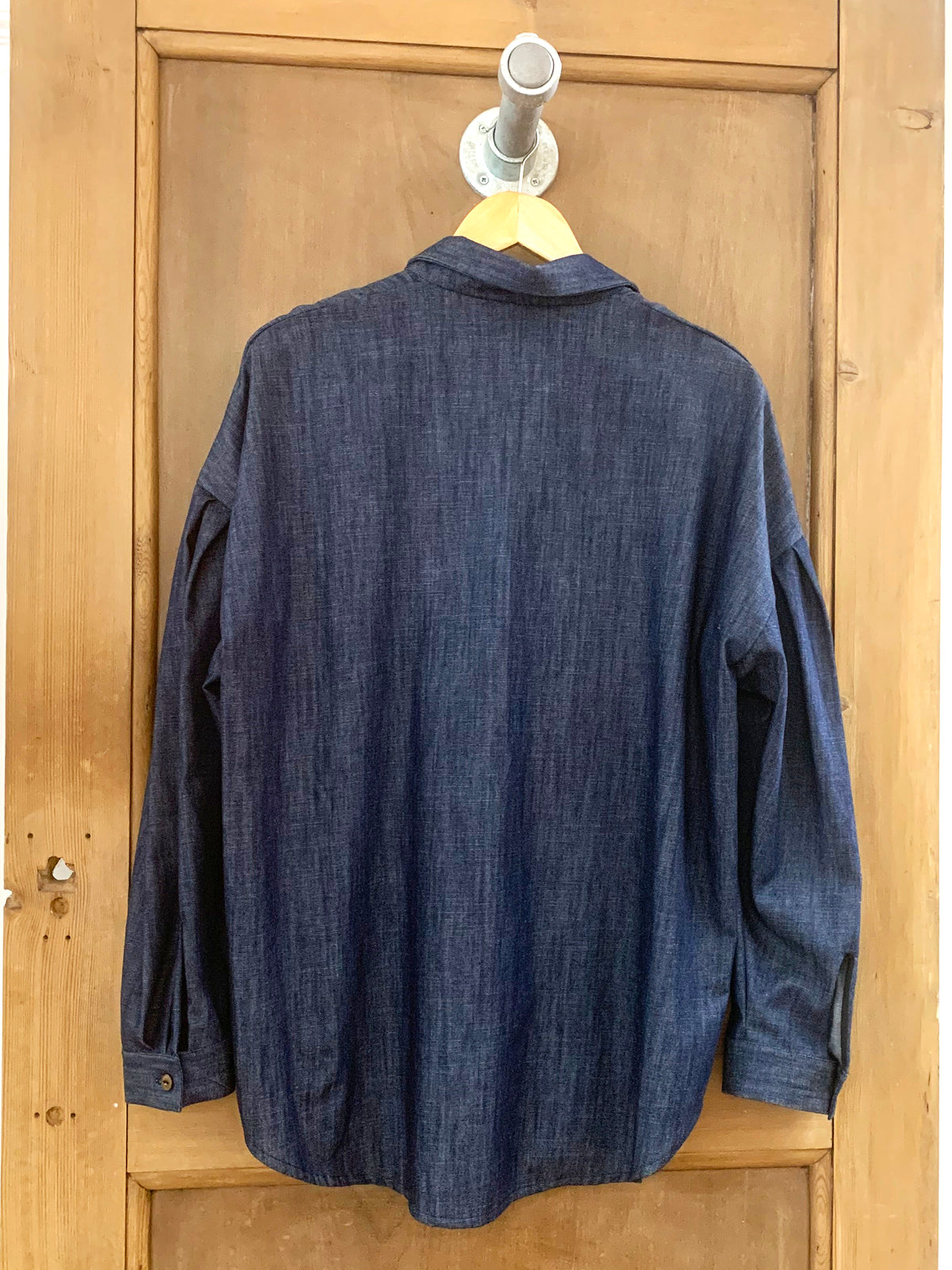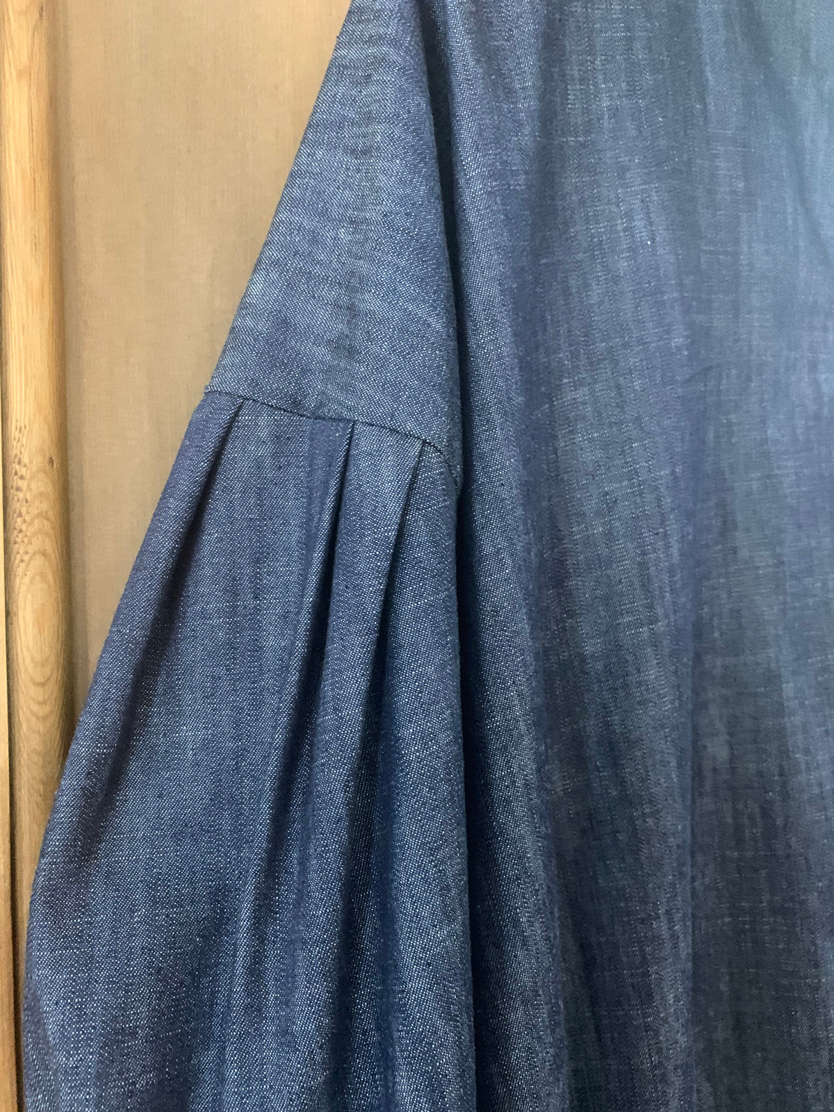 THE POET / Denim Chambray Pleat Sleeve Collared Shirt