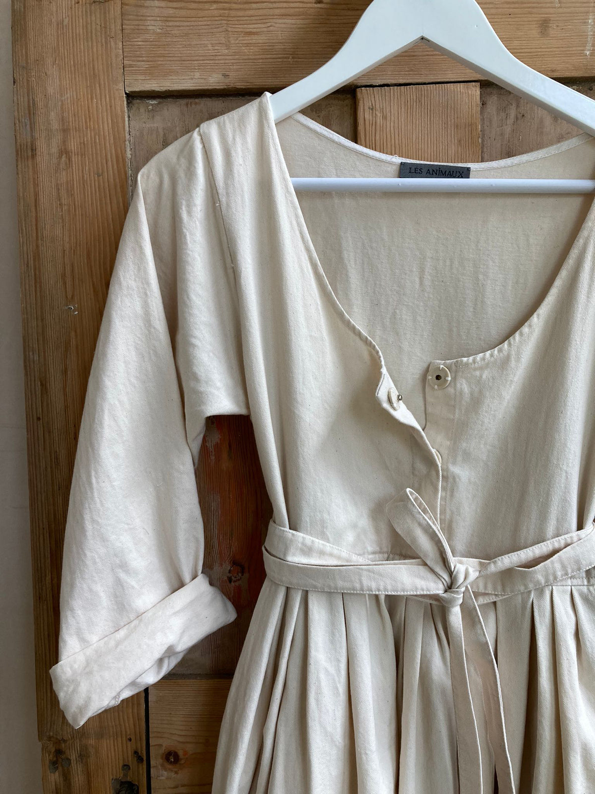 This dress is part of our organic cotton drill collection and is designed to be artfully rumpled with a soft hand feel and vintage workwear aesthetic.