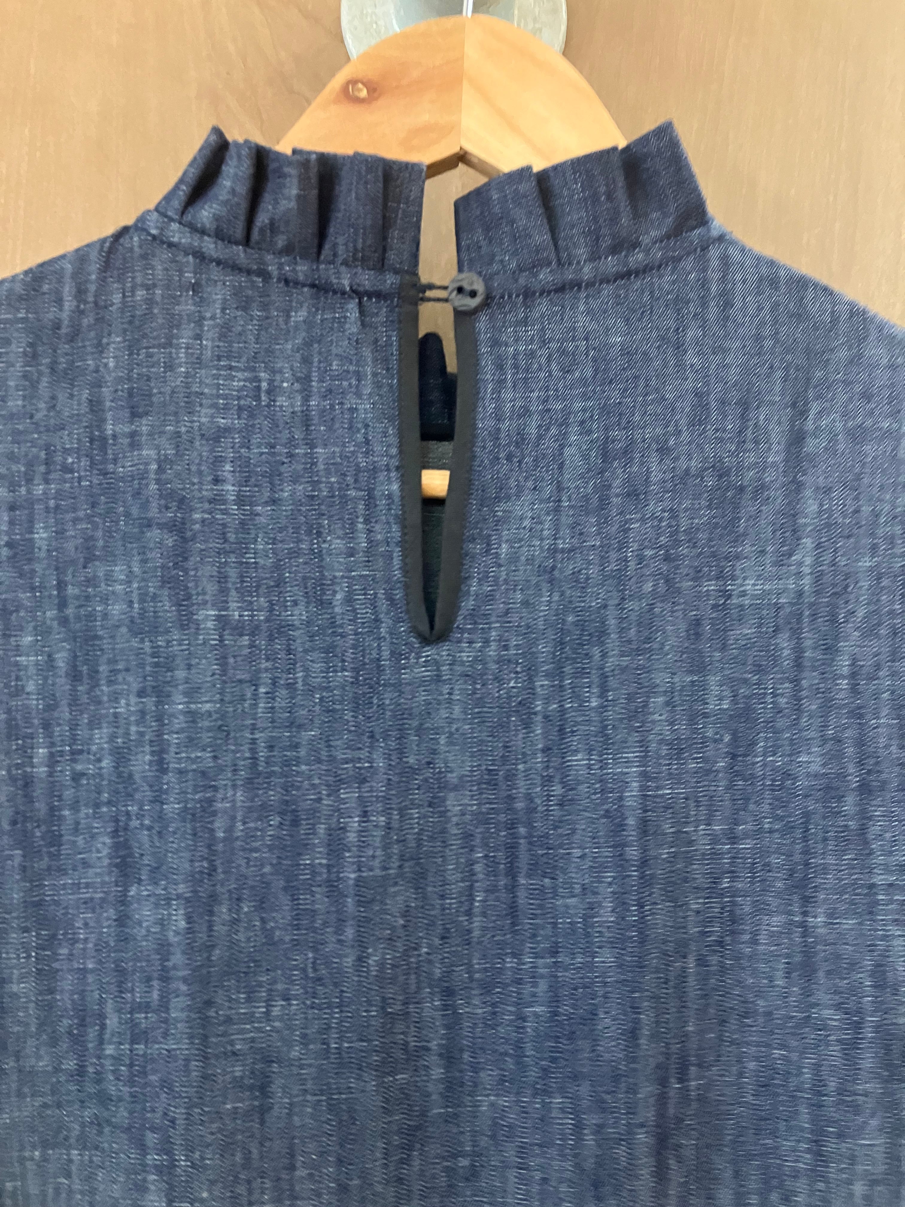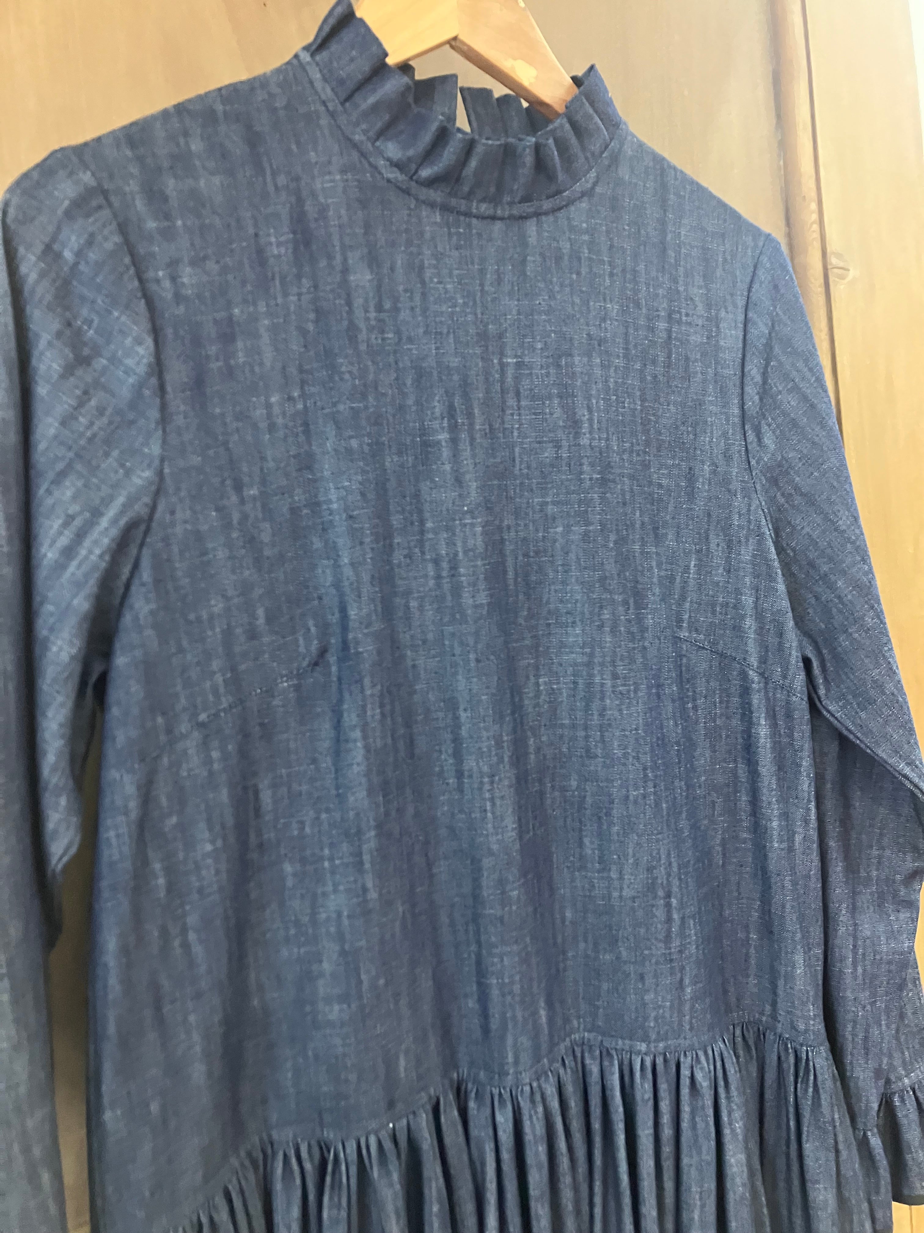 THE NOVELIST / Denim Ruffle Neck Fitted Dress