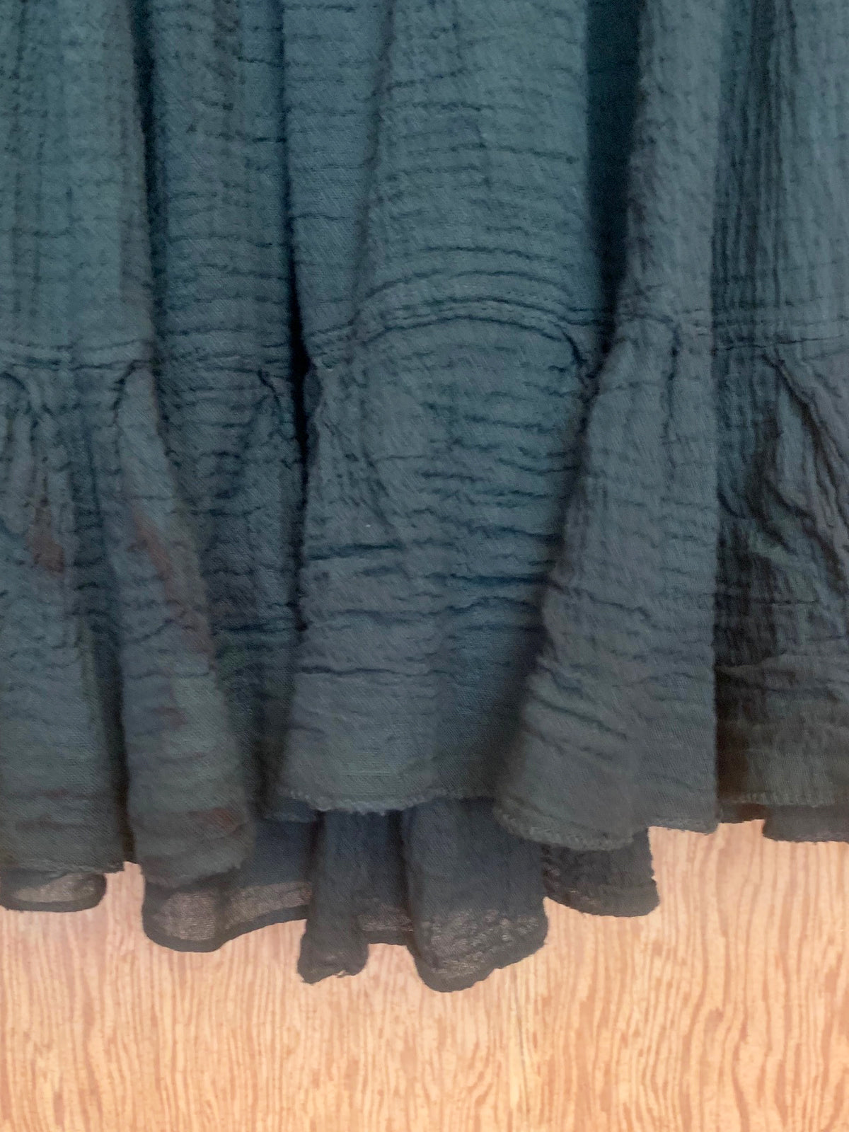 The Spindler organic cotton Indian cotton dress is the perfect relaxed dress with a timeless feel. This dress features a pleated detail dropped waist, a ruffle hem, pockets and overlocked edges. This dress is part of our organic Indian cotton collection, this fabric has a soft hand feel.