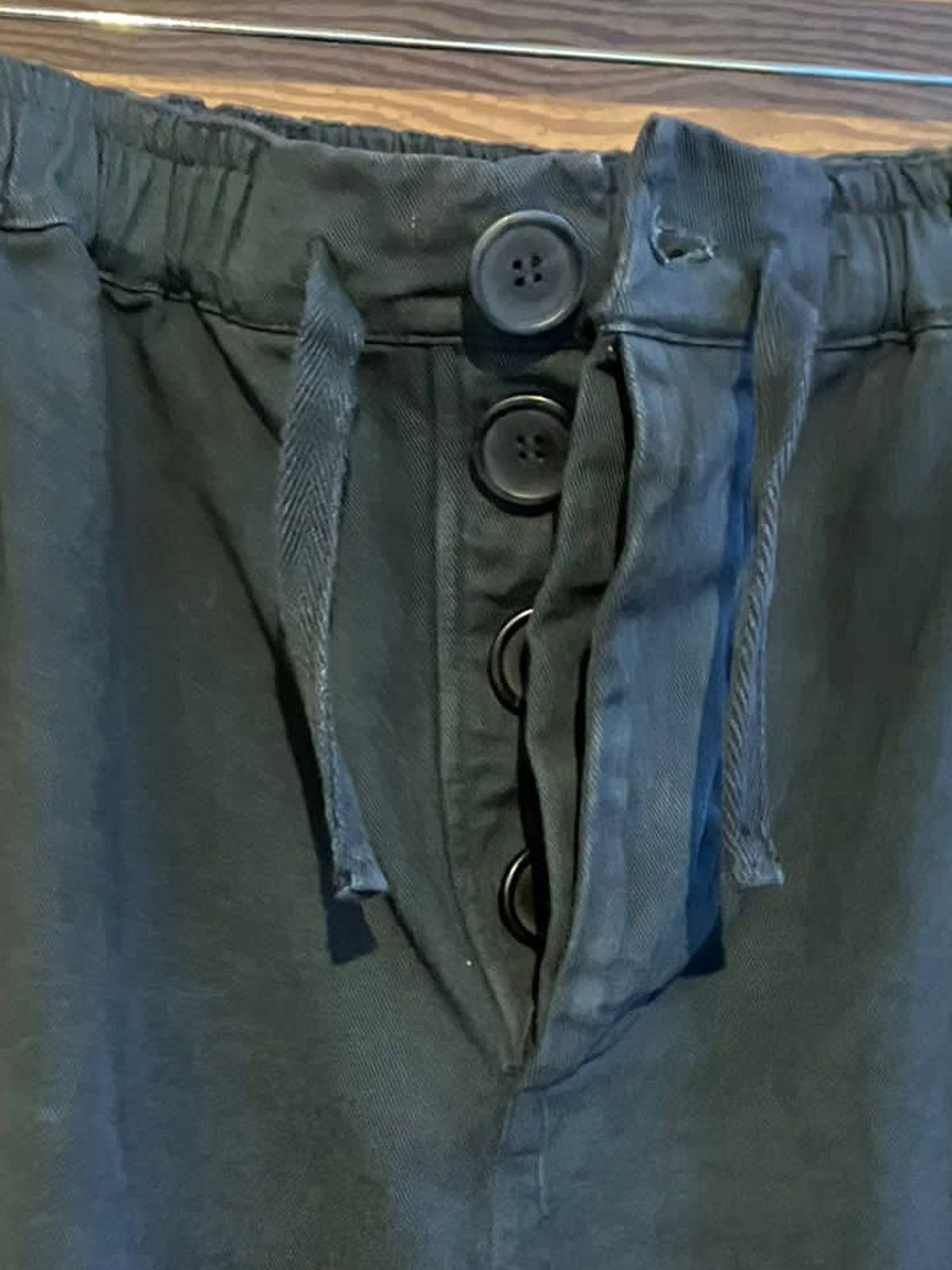 A timeless relaxed fit pant with elasticated waist and concealed button fly. This pant features a tie front and slim cuff.