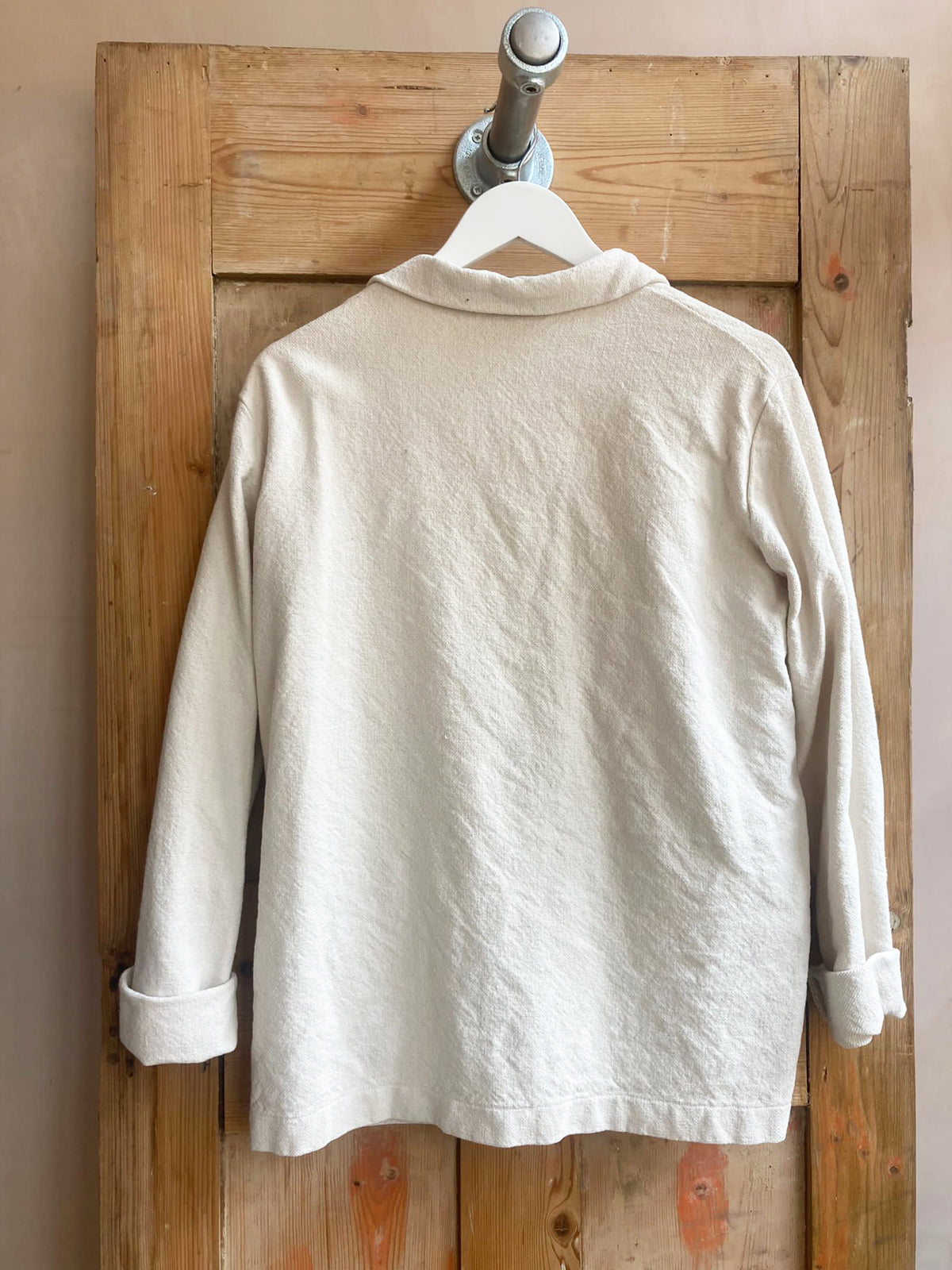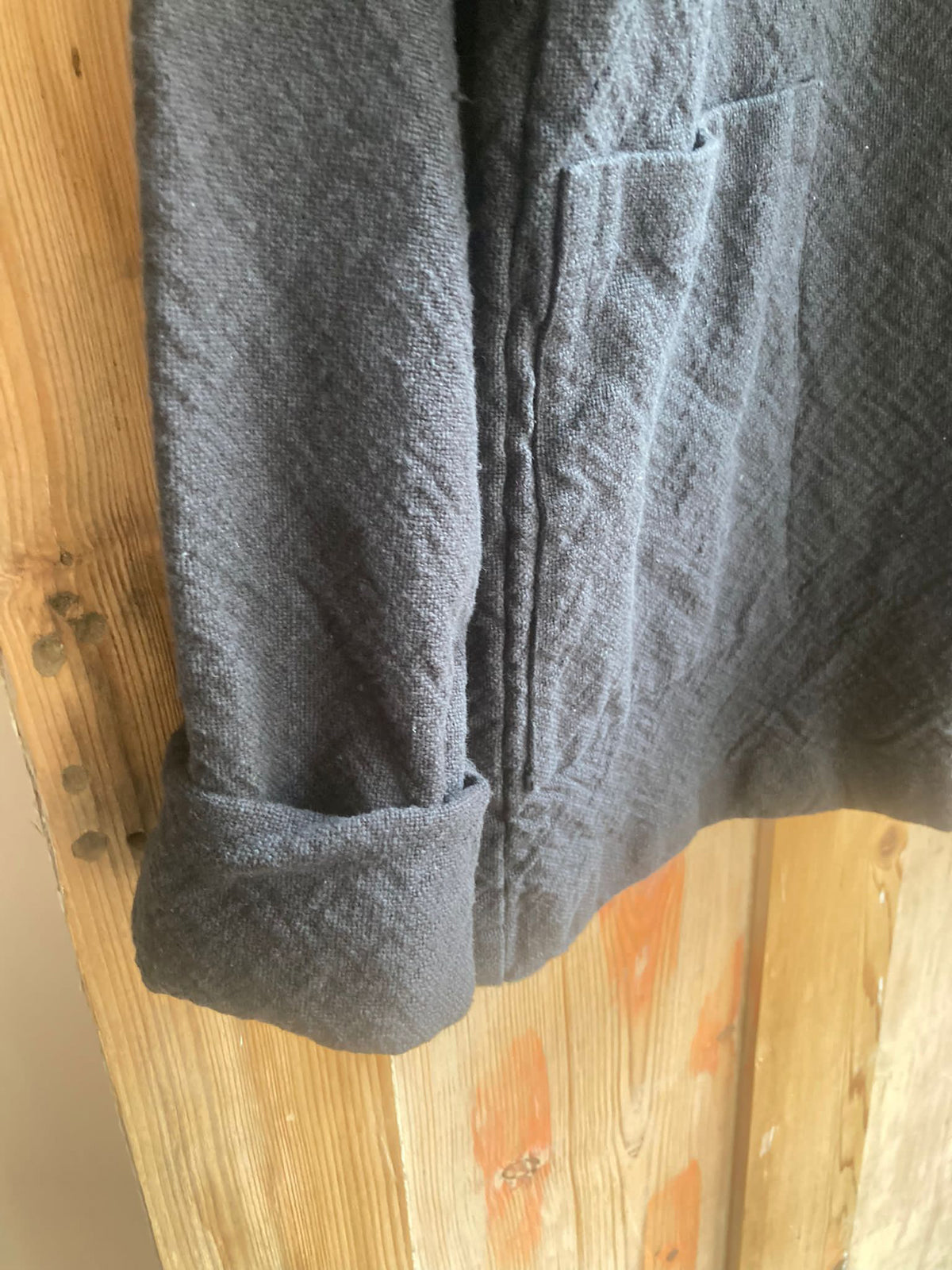 The Signwriter jacket has a relaxed feel and is made from a hand woven organic texture from a mill in Kerala. The irregularities in the weave are all part of the charm of this fabric. This style is garment washed for and finished with hand stitched fastening snaps. This jacket features patch pockets and the sleeves are designed so the cuffs can be rolled up.