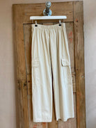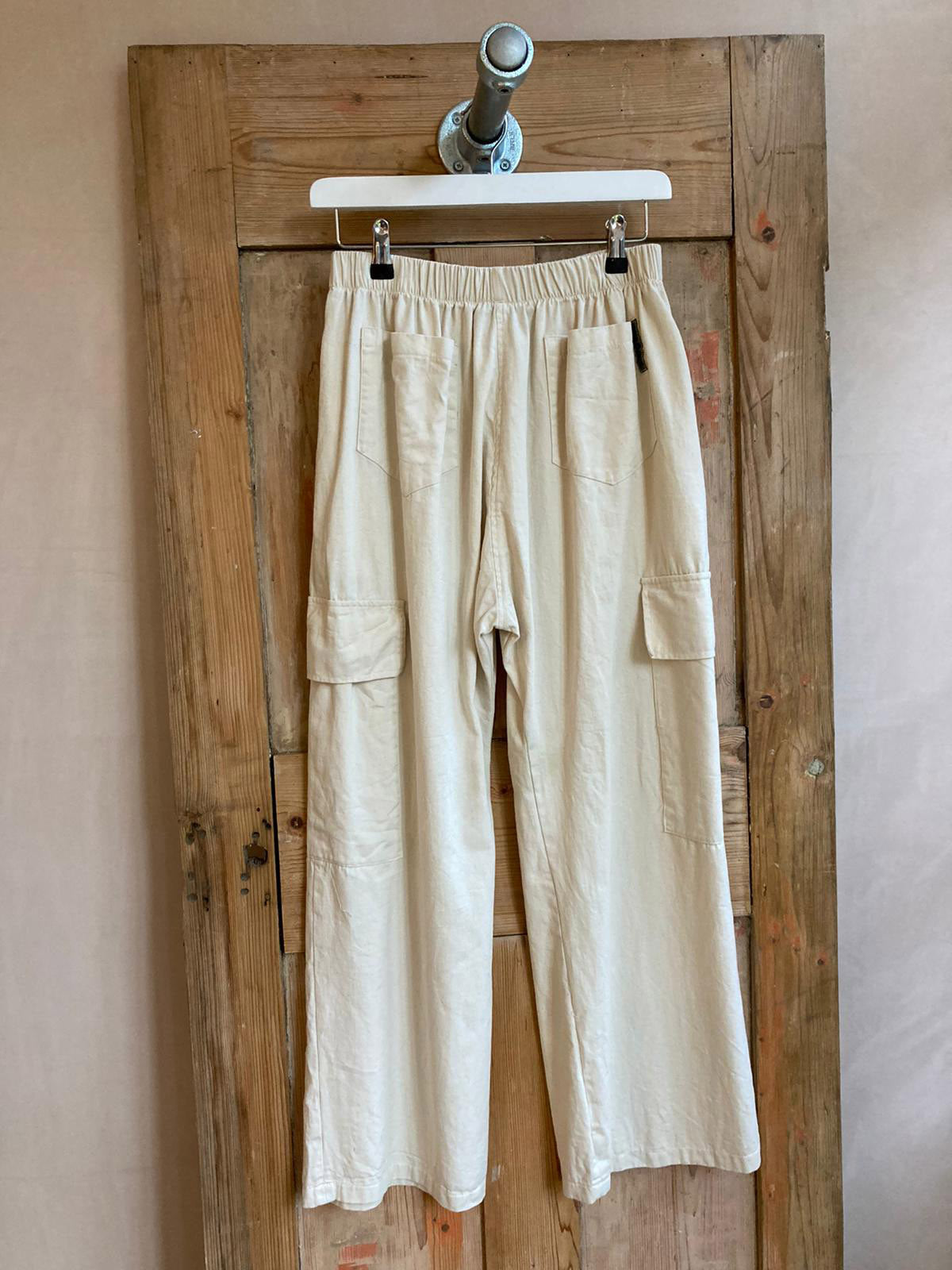 A timeless relaxed fit cargo pant with elasticated waist and patch pockets. This pant can be worn high waisted or lower on the hips for a more relaxed appearance.