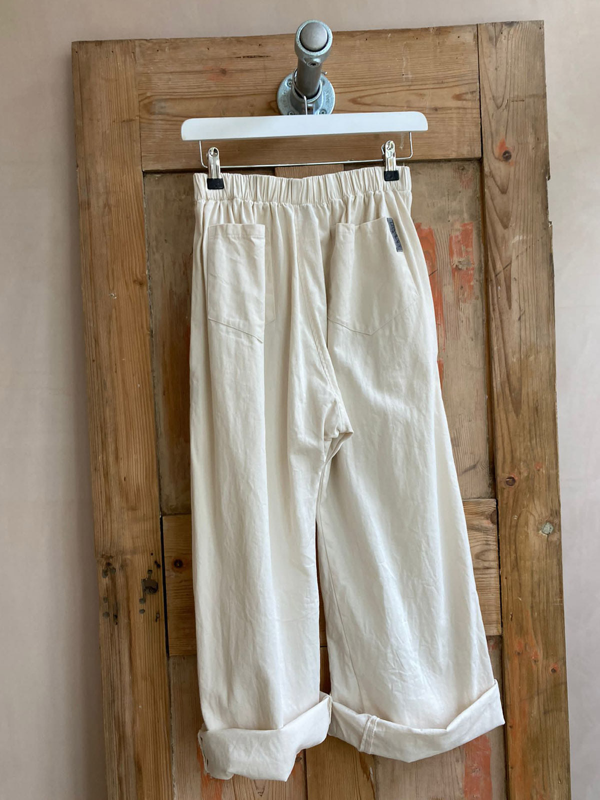 A timeless relaxed fit pant with elasticated waist and patch pockets. This pant can be worn high waisted or lower on the hips for a more relaxed appearance. These pants have back and side pockets.