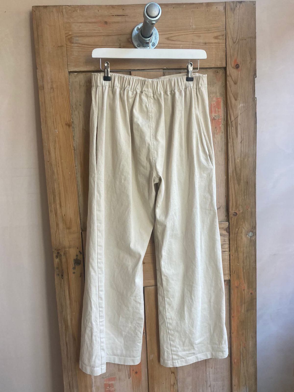 The Weaver is a timeless wide leg pant made from organic cotton drill. Designed with a flat front and an elasticated waist for a relaxed feel and effortless versatility. Our elasticated pants can be worn high waisted or lower on the hips for a more relaxed appearance.