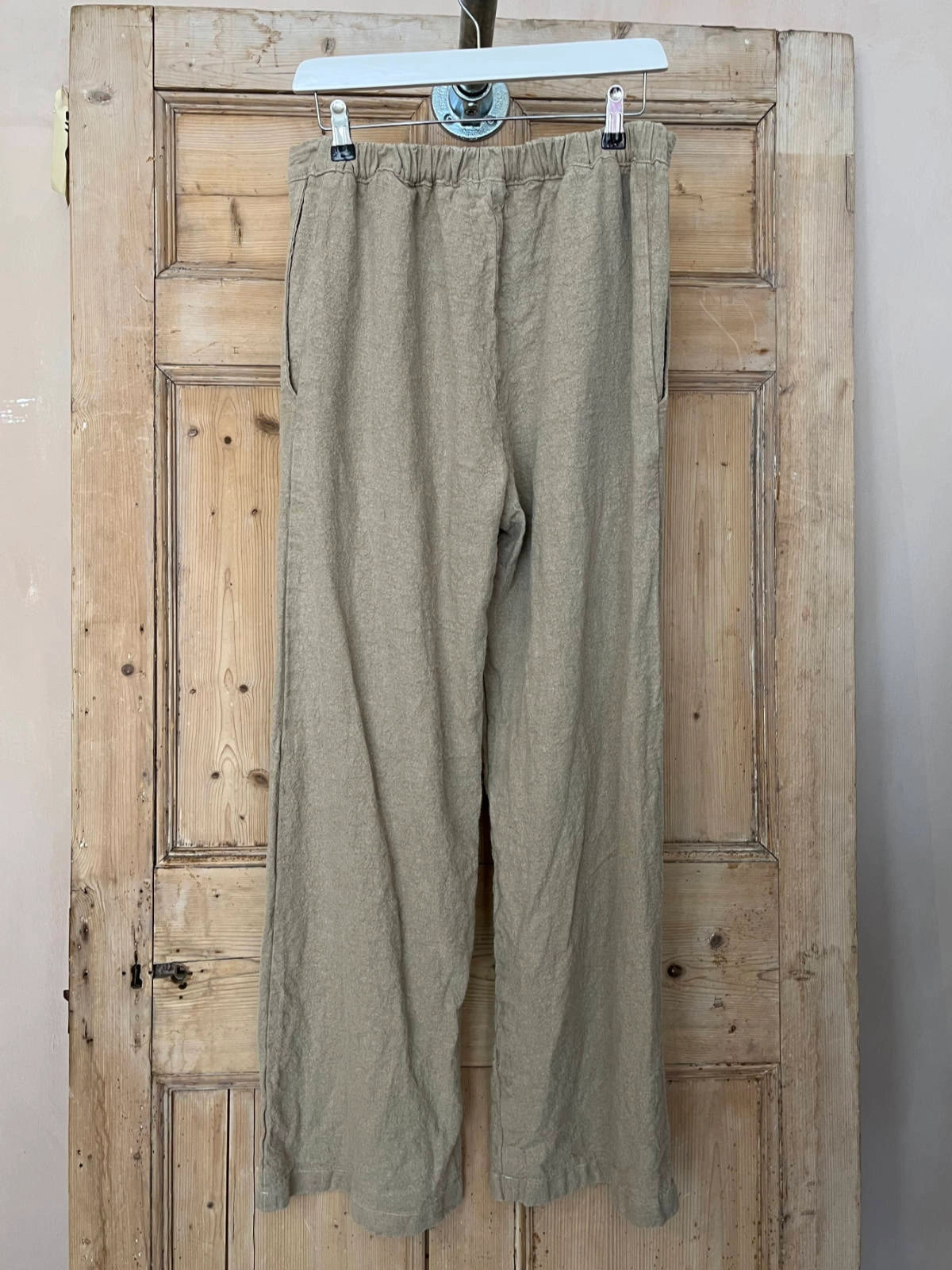 The Weaver is a timeless wide leg pant made from organic Linen. Designed with a flat front and an elasticated waist for a relaxed feel and effortless versatility. Our elasticated pants can be worn high waisted or lower on the hips for a more relaxed appearance.