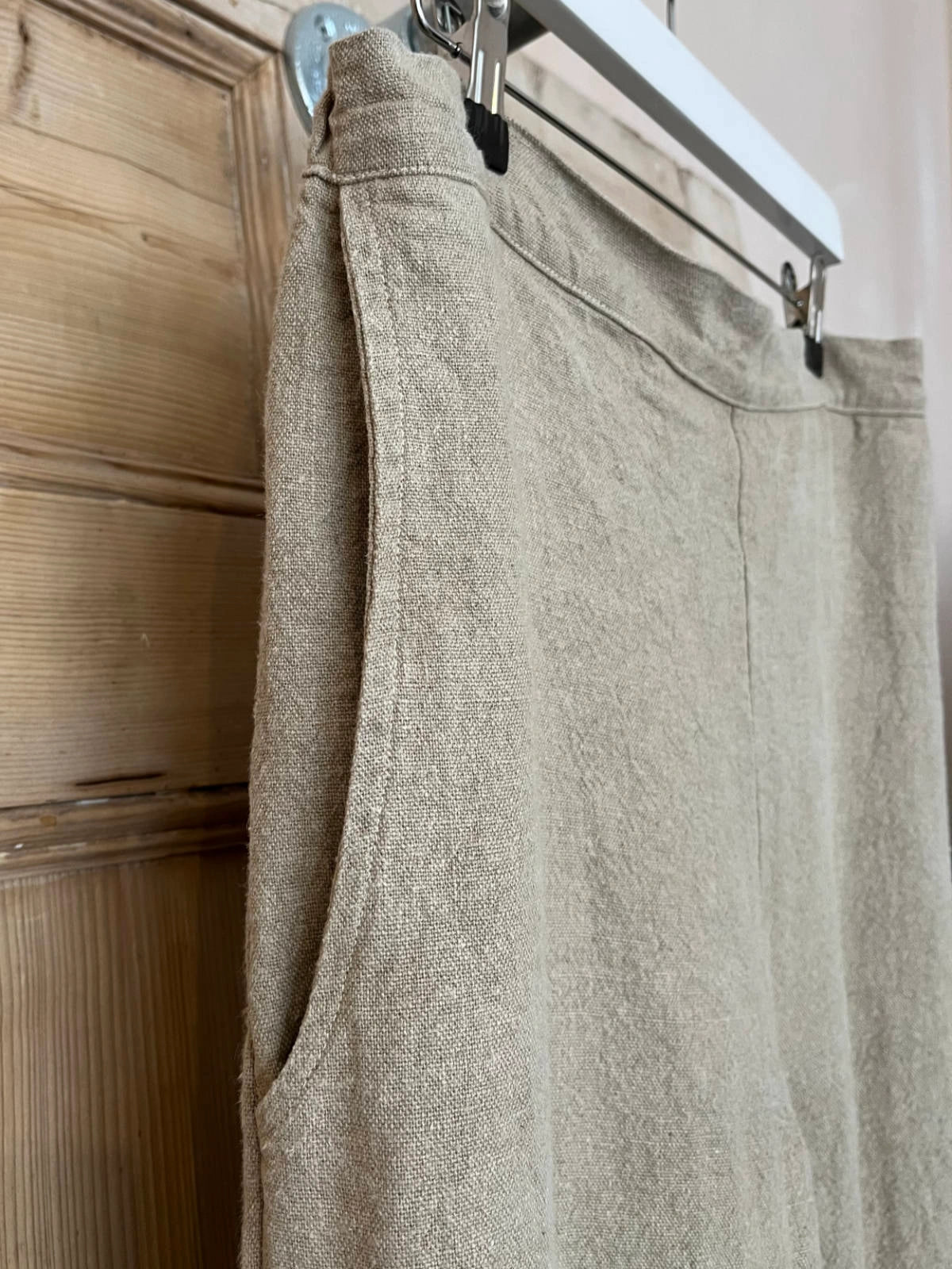 In this organic linen fabric we also offer The Candlemaker wide leg pant with a pleat front detail.