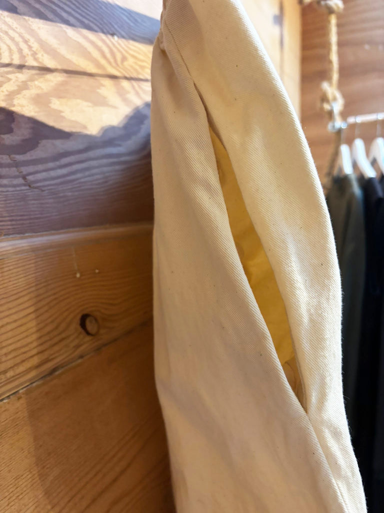 We make our pieces using unbleached cotton fabrics and hand dye them in small batches in our studio in Margate. As we make and dye all pieces to order we are able to offer an extensive range of colour options. We use low impact dyes from an independent UK manufacturer and don't use any chemicals for fixing. Instead we use natural substances such as salt or bicarbonate of soda. Unfortunately there are currently no natural dyes available that are robust enough for commercial use.