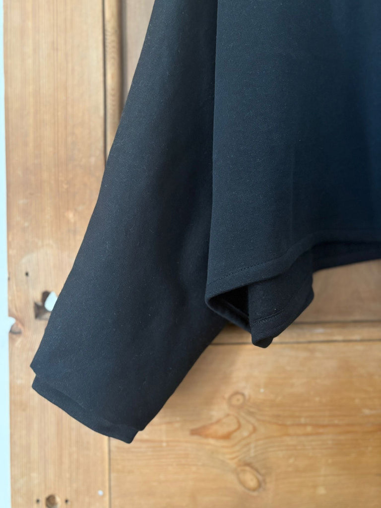 The Paper Maker long sleeve cropped sweatshirt with a full kimono cuffed sleeve is relaxed and effortless. Made from an organic recycled cotton poly blend fabric that we offer in solid colours and when dyed gives a heathered marl appearance.
