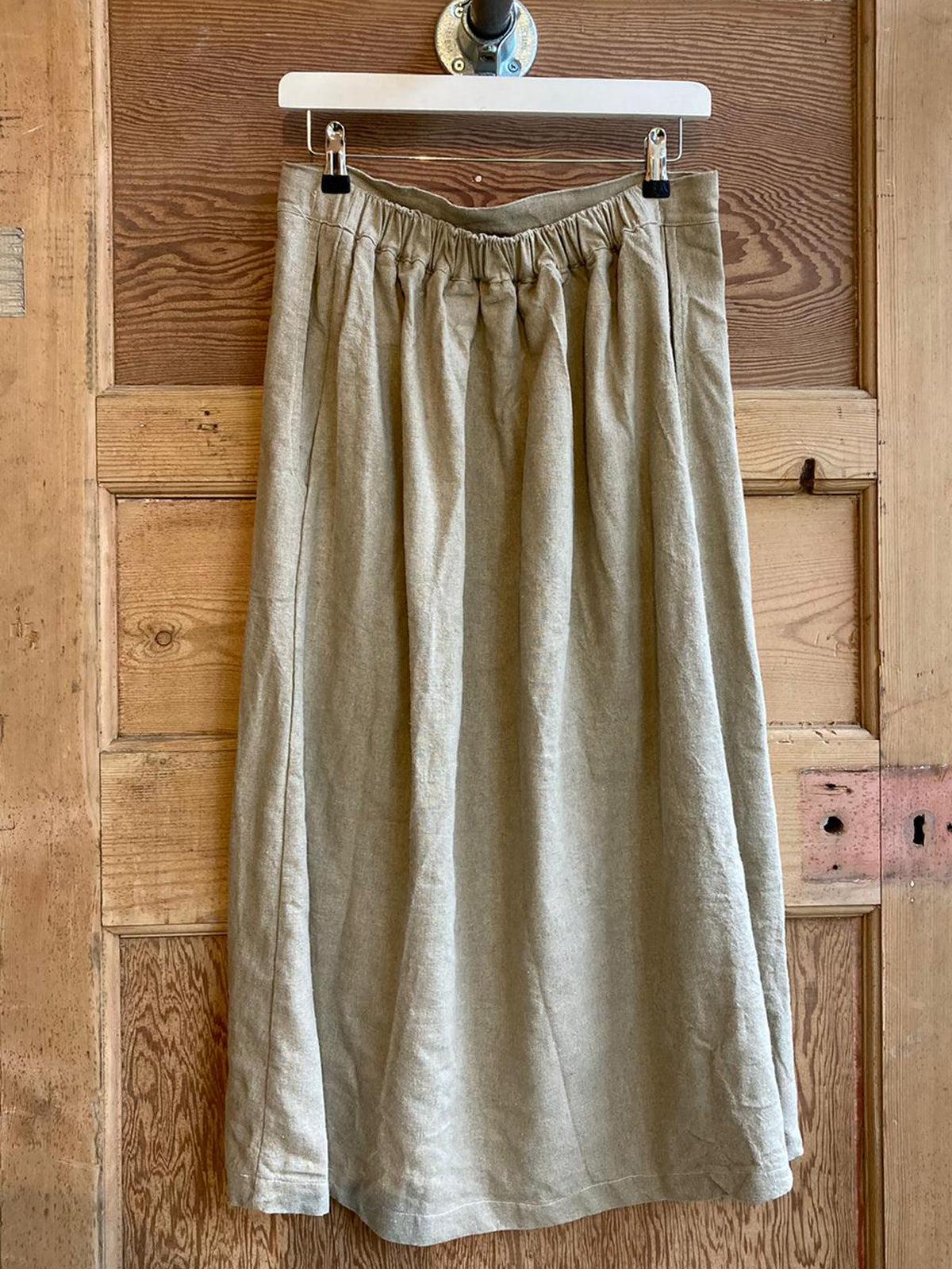 The Weaver is a timeless A line skirt made from  organic Linen. Designed with a flat front and an elasticated waist for a relaxed feel and effortless versatility.