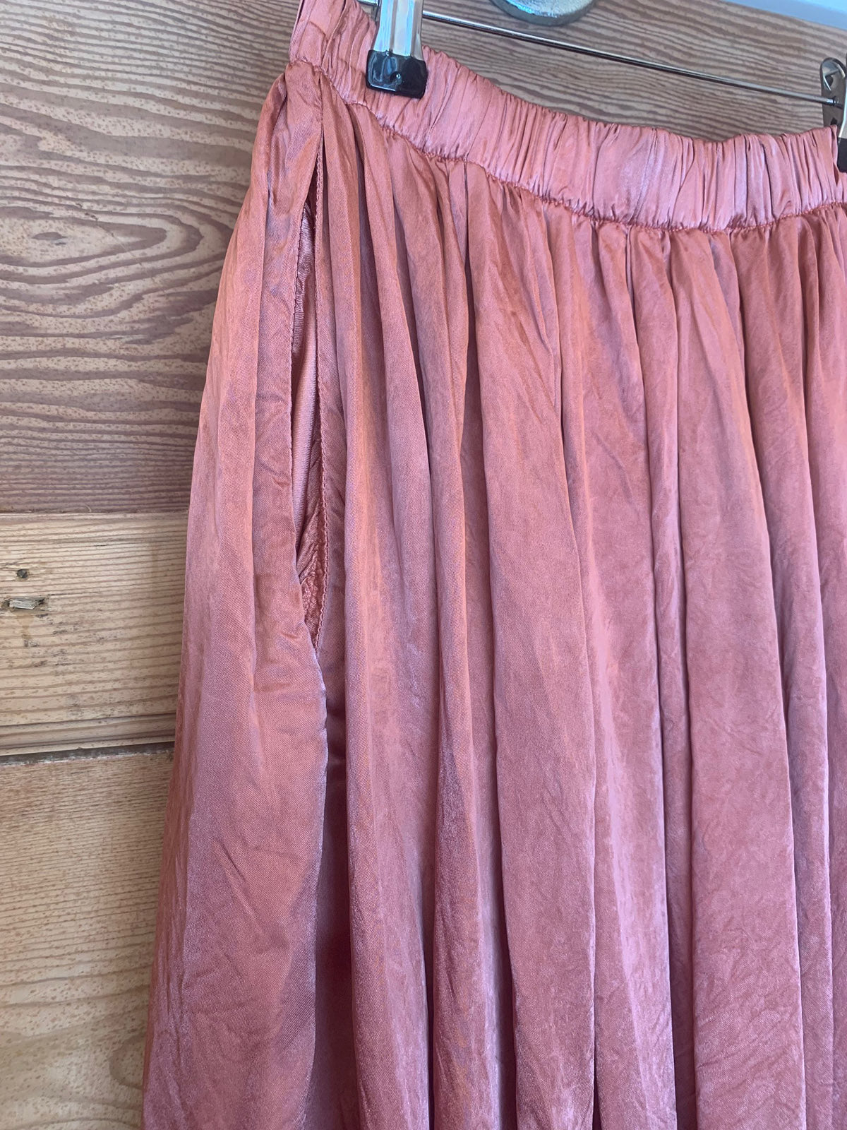 The Herbalist elasticated skirt features a gathered waist and side pockets for the perfect blend of comfort and style. This versatile skirt is part of our satin collection and made from viscose fabric with a soft and flowing feel.