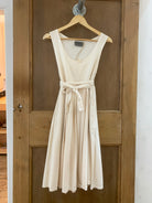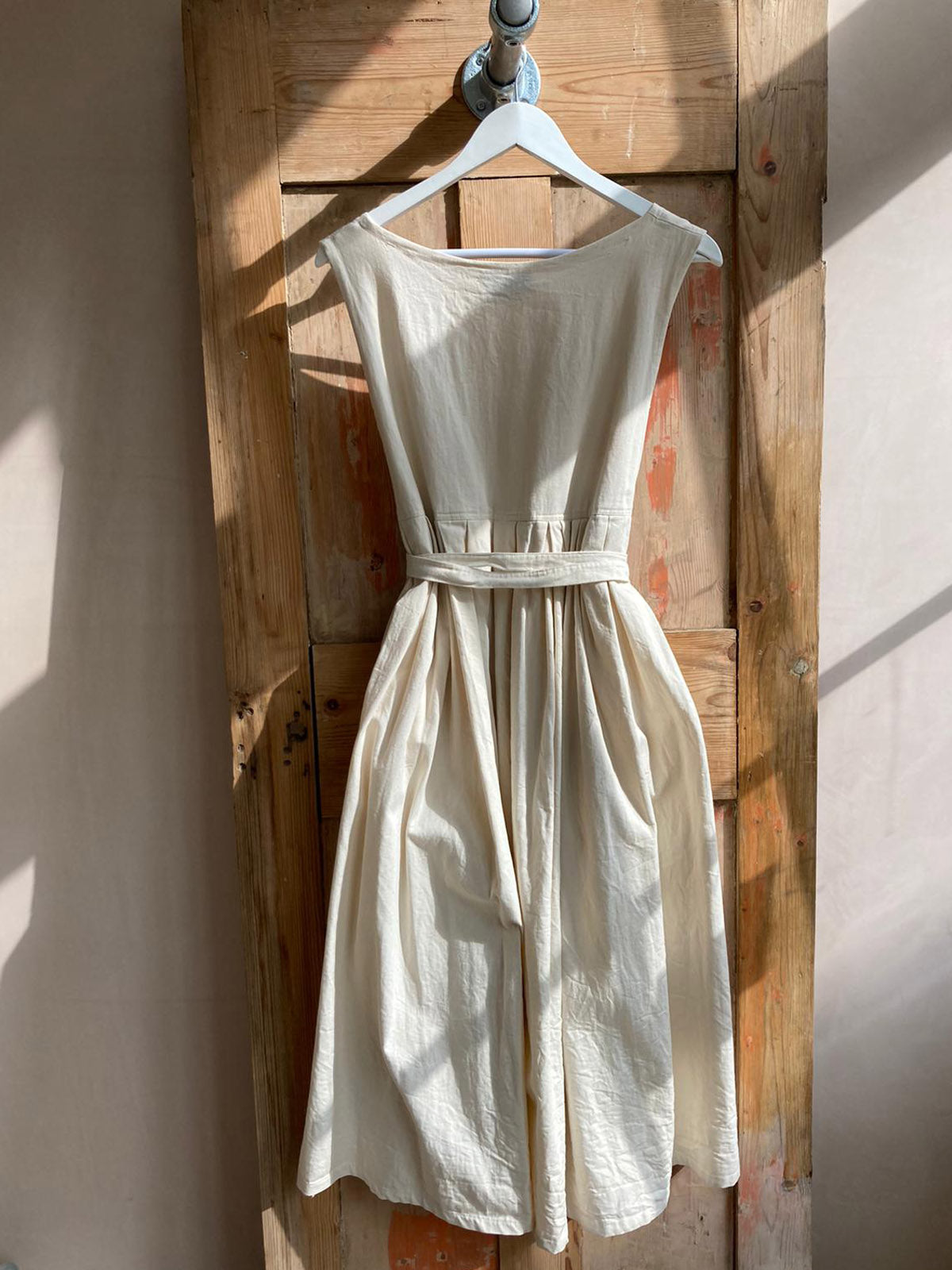 The Fruit Picker sleeveless dress is a versatile relaxed dress that can be worn with the scoop neck at the front or back and with or without the belt.