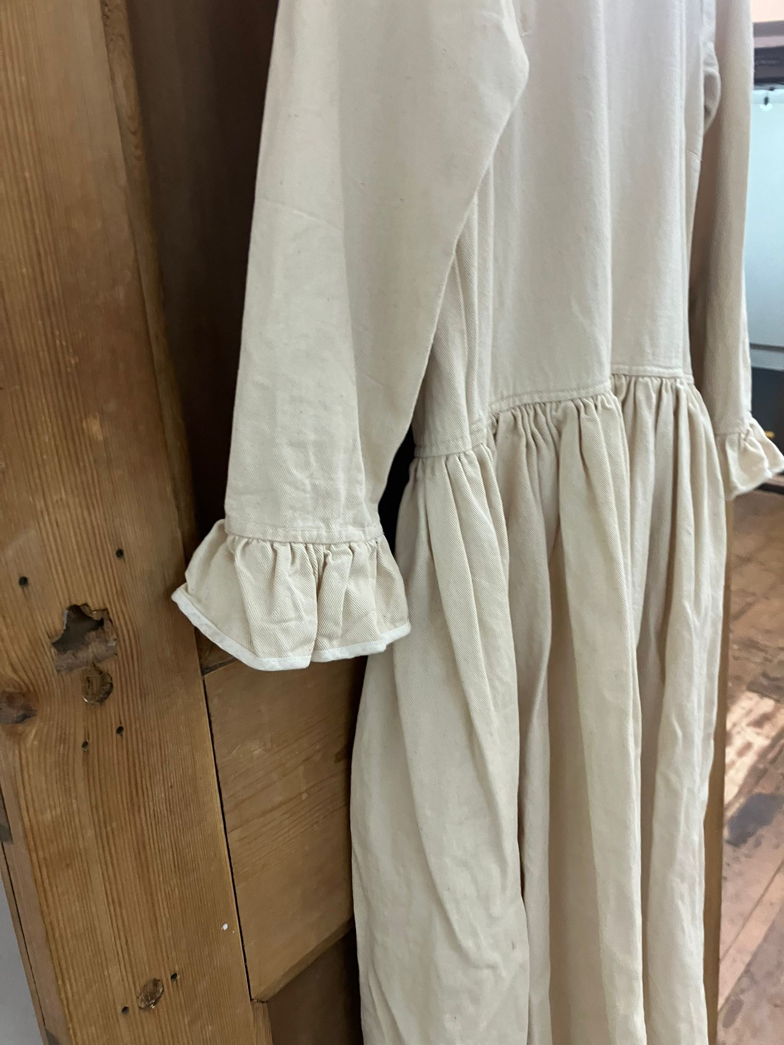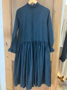 This more fitted dress, inspired by those worn by author Charlotte Brontë, is part of our organic cotton drill collection which is designed to be artfully rumpled with a soft hand feel and vintage workwear aesthetic.