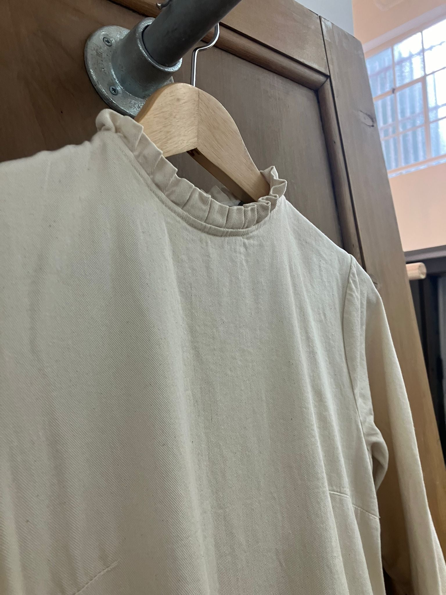 THE NOVELIST / Drill Ruffle Neck Fitted Dress