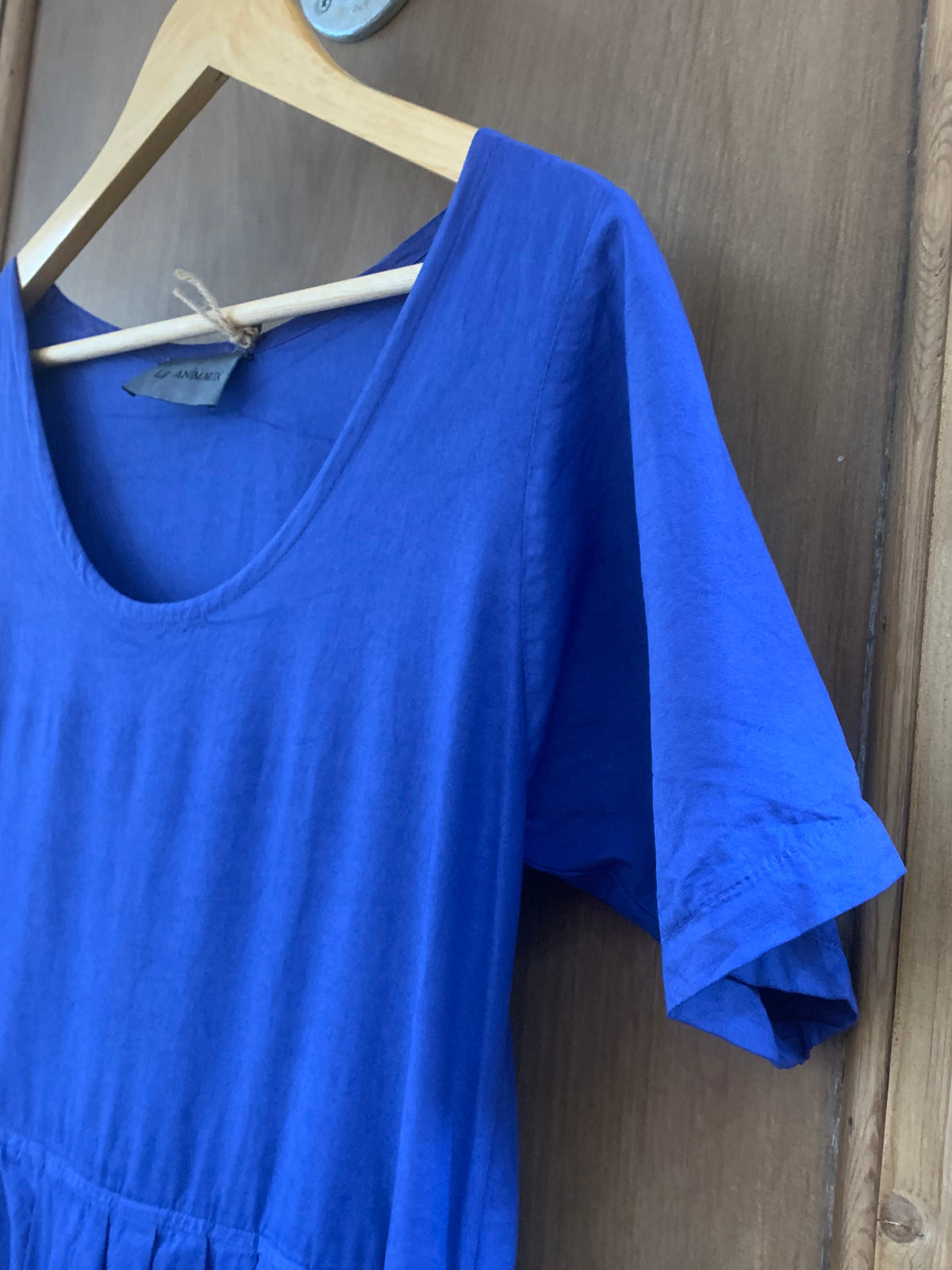 The Herb Picker short sleeve dress is a versatile relaxed dress that can be worn with the scoop neck at the front or back. This dress features side pockets. This dress is part of our organic 100% cotton poplin collection.