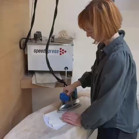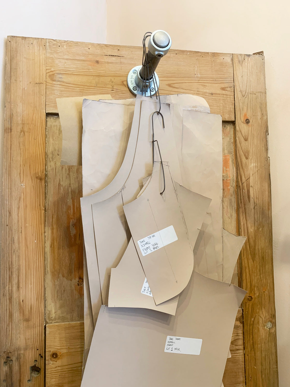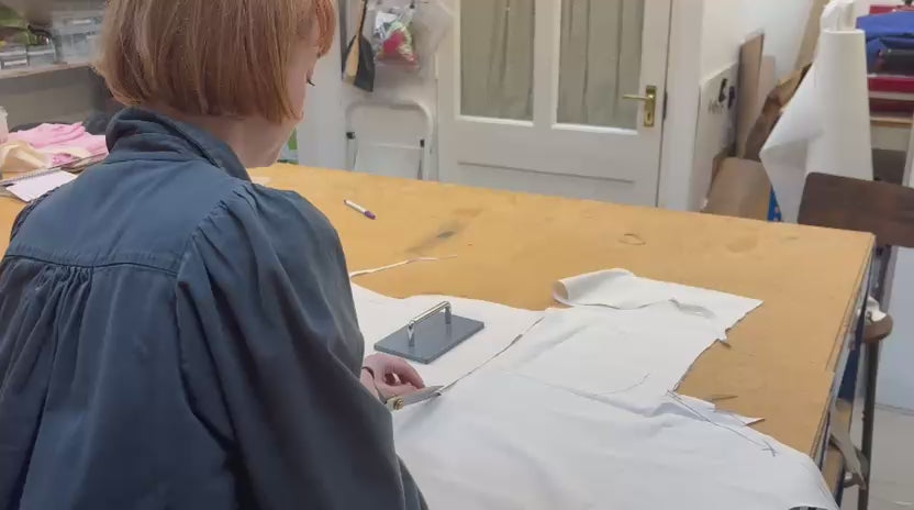 As we hand make all of our patterns and garments in our studio we use many new and traditional tools in our manufacturing process. Many of our finishes are very labour intensive traditional techniques as we feel it's important to keep using these as commercial garment production cannot accommodate them.