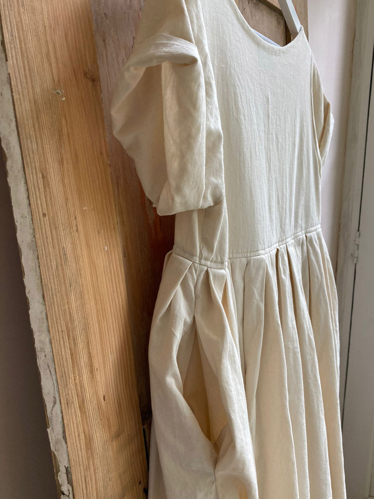 This dress is part of our organic cotton drill collection and is designed to be artfully rumpled with a soft hand feel and vintage workwear aesthetic.