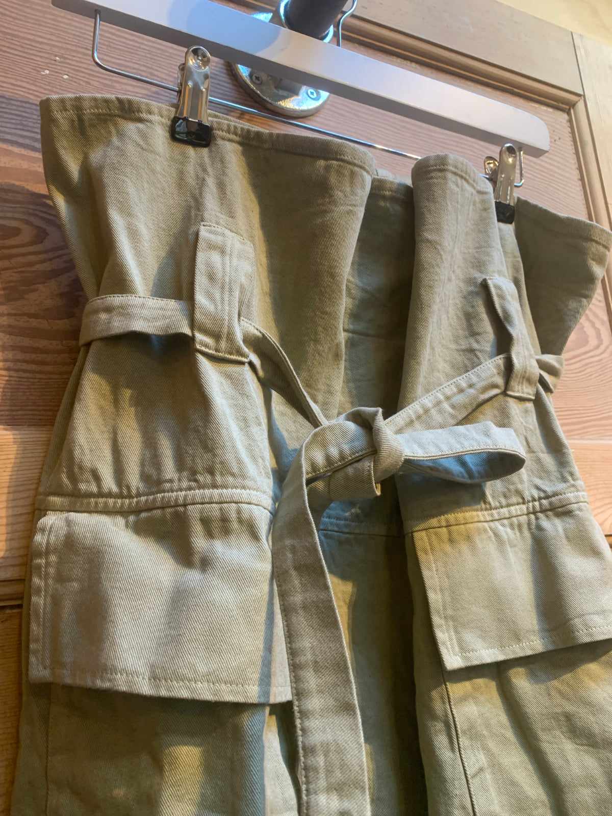 A Fisherman heavy drill skirt is a timeless style that resonates with Margate's local fishing heritage. This skirt has a relaxed fit that can be tied in multiple ways, we offer them in one size.