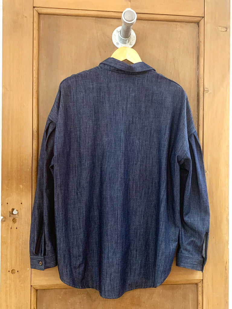 THE POET / Denim Chambray Pleat Sleeve Collared Shirt